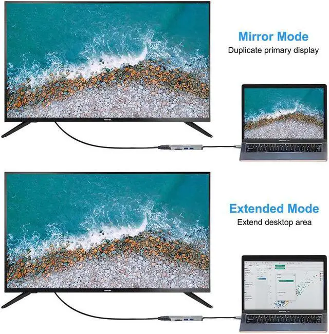 USB C to HDMI Adapter Leizan USB C docking station allow you enjoy full 4K Ultra HD output with mirror and extend dual mode, support up to 4K@30Hz &1080P@60Hz respectively or dual 1080P, which provides you more working space, ideal for multi-screen working and entertainment (tips: Windows systems only, others don't support extend mode).