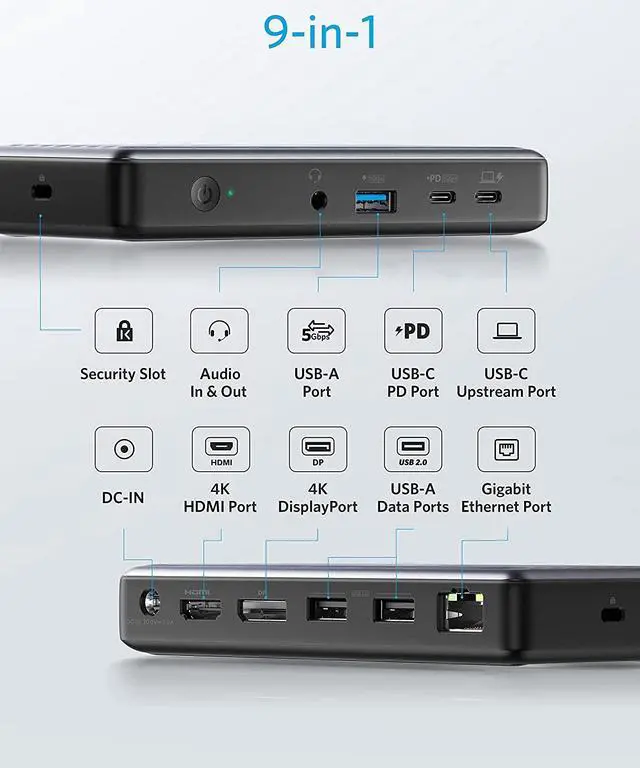 Next page3.8 out of 5 starsAnker USB C Docking Station, PowerExpand 9-in-1 PD Dock, 60W Charging for Laptop, 20W Power Delivery, 4K HDMI and DisplayPort, USB 3.0 and USB 2.0 Data, Gigabit Ethernet, 3.5 mm Audio