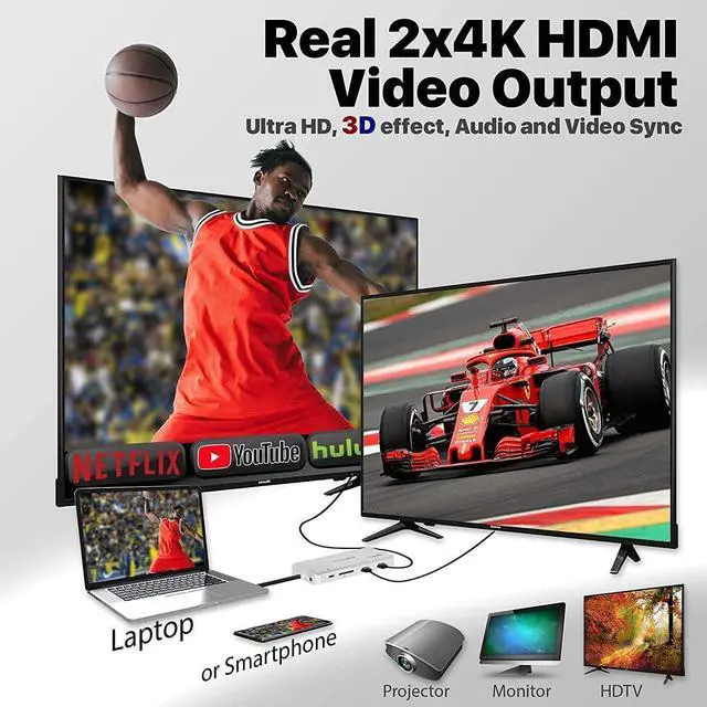 TRIPLE SCREEN & CRYSTAL CLEAR HDMI OUTPUT: Start streaming the highest resolution videos and shows via 2x 4K HDMI port to HDMI-enabled devices with resolutions up to 4K/30Hz and 1920 x 1080 (1080p)/60 Hz. Downward compatibility is supported with 1440p/1080p/720p/480p/360p resolutions. You can mirror/extend your screen to external devices and enjoy crisp, clear, and colorful imager Now NOV8Tech 13-in-1 USB C Hub SUPPORTS DUAL HDMI for the new M1 MacBook Air & Pro.