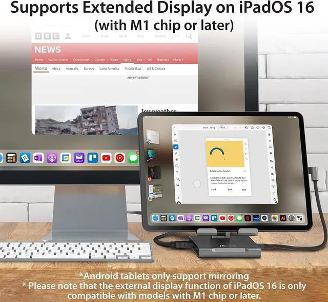 Compatible with iPad Pro, iPad Air, iPad mini, and Android tablets.