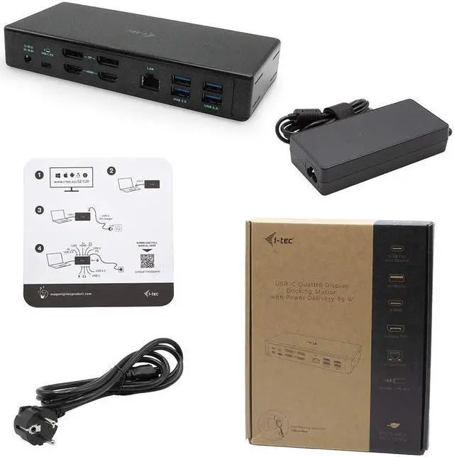 i-tec USB-C Quattro Docking Station for 4 Displays with Power Delivery 85W - 2x DisplayPort, 2x HDMI, 1x GLAN, 5x USB 3.0, 1x USB-C, 2x Jack for Audio and Microphone