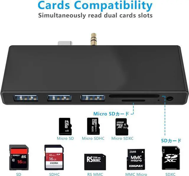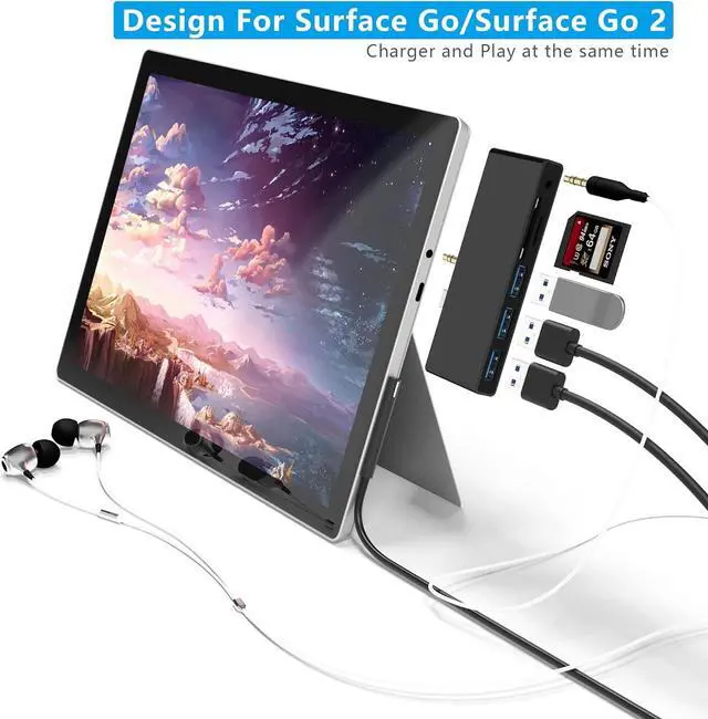 6 in 2 Surface Go / Surface Go 2/ Surface Go 3 Hub Adapter with Multi Ports of 1 USB 3.0 Port +2 USB 2.0 Ports +Audio and Mic 2 in 1 Earphones Jack +SD &TF( Micro SD )slot Card Reader Como Adapter