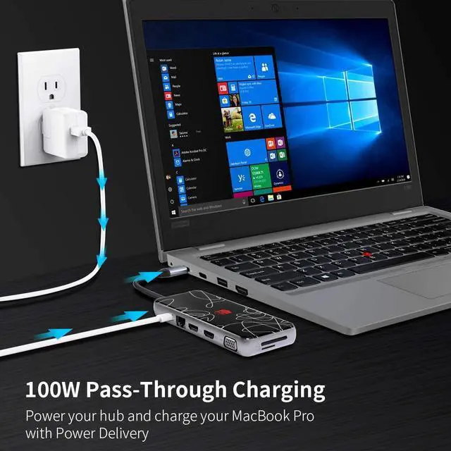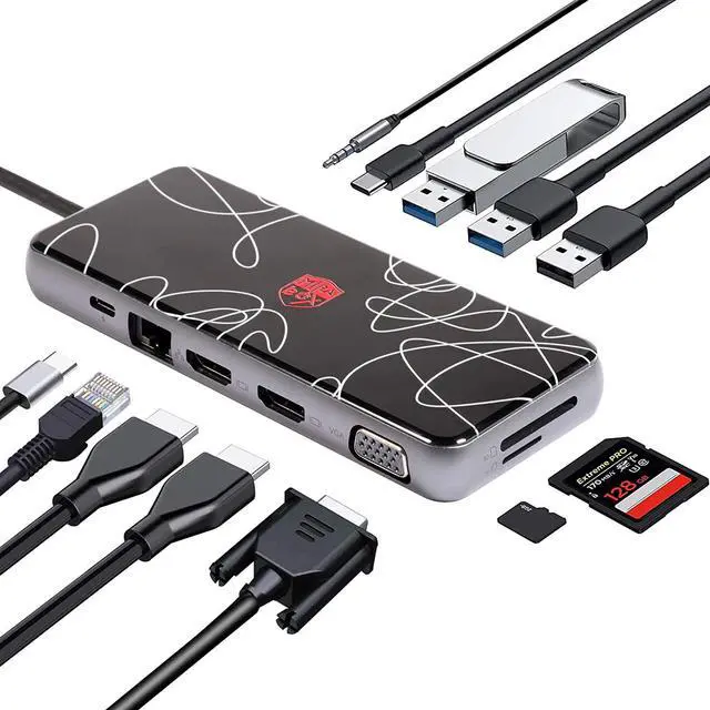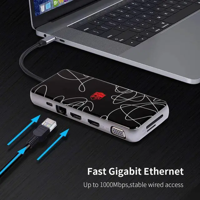 Great Versatility & Ultra Portable Design - Slim and compact without any compromise on accessibility and just simple Plug and Play connectivity, 12-IN-1 USB C hub meets your most of needs. Lighten your load and ditch the extra cable adapters, consolidate them with this USB C hub! Extremely compact lightweight in design and convenient for travel and business trips