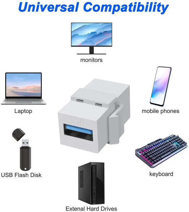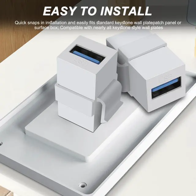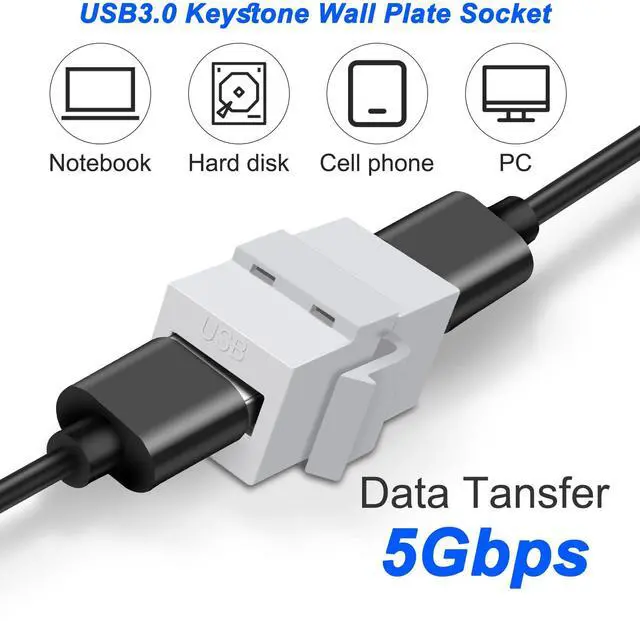USB 3.0 keystone plug-in Connects two USB 3.0 or USB 2.0 cables with USB Type A male end. The USB keystone fits into the standard opening of a wiring board or wallboard keystone jack.