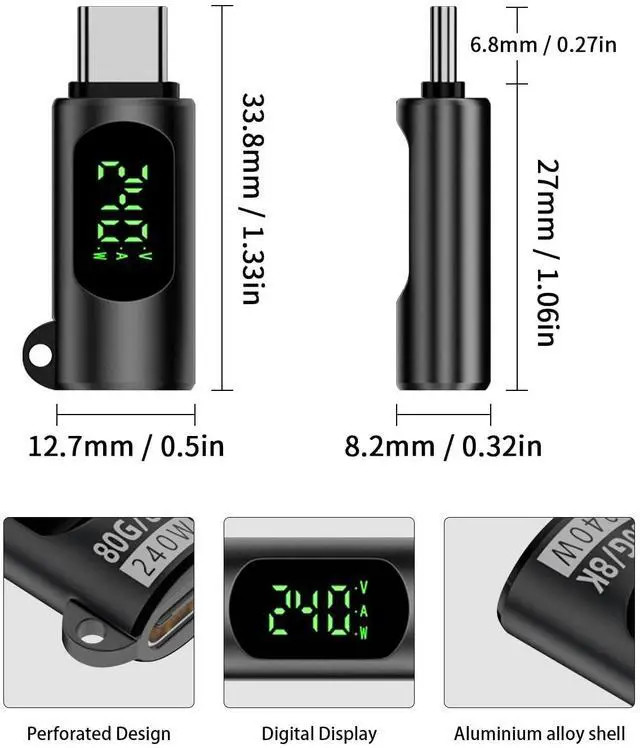 240W PD Fast ChargingThe adapter can provide up to 240W (48V/5A) PD charging, equipped with an E-Marker chip, fully meeting your charging requirements for Macbook, iPhone 15 series or other USB-C devices, ensuring more stable charging.