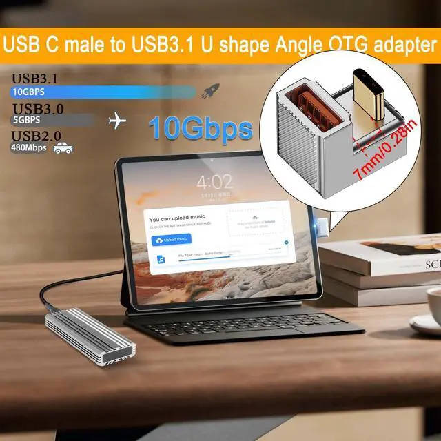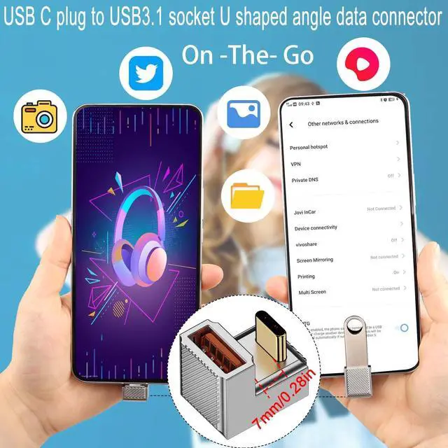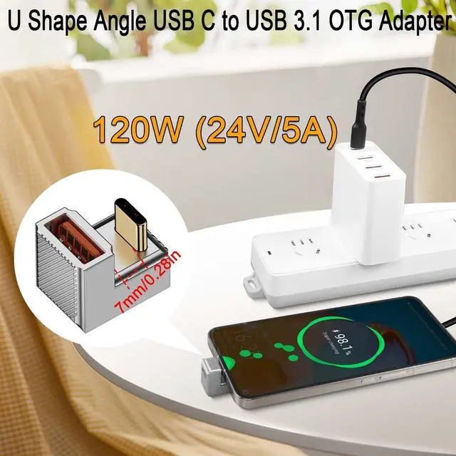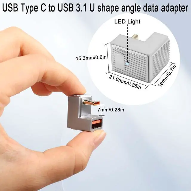 U Shape Angle USB C Male to USB 3.1 Female OTG connector.180 degree U shape angle design, put the cable on the back of the mobile phone or tablet brain to connect, avoid its interference with your operation. Support OTG expansion function, let the mobile phone or tablet PC, easy to external USB drive, joystick, mouse, keyboard and so on. Its exquisite craftsmanship, zinc alloy shell, sturdy and durable. Double-sided LED indicator light, light up when working.