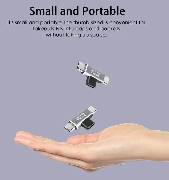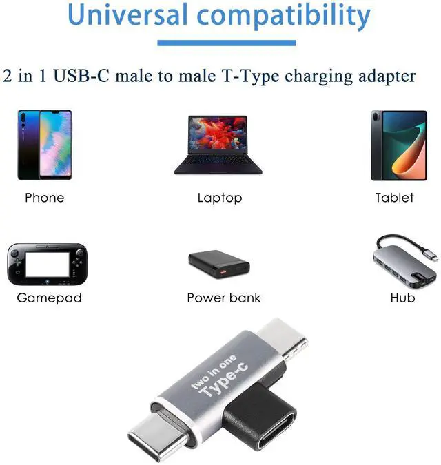 2 in1 T-Type USB C Female to Dual USB C Male Charging Adapter, Allows you to split the power between two USB Type C devices with just one cable and charge your phone or tablet at the same time. Small and convenient, it solves the hassle of carrying multiple USB C charging cables, perfect for home use, office or business and travel.