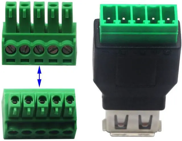 FeaturesDIY USB 2.0 A Female to 5 pin (way) Bolt Screw Terminal Pluggable Type Block Connector(USB to screw teminals