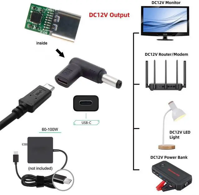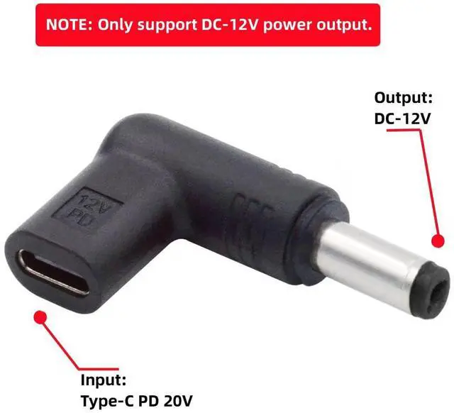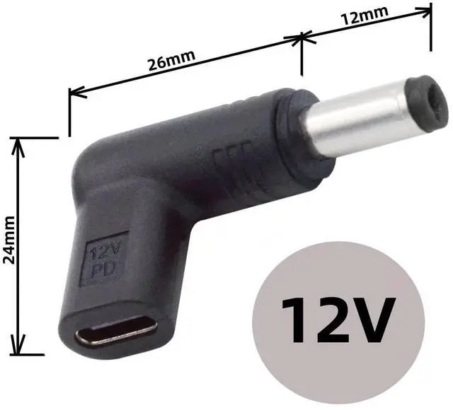 USB 3.1 Type C USB-C Female to DC 12V 5.5x2.1mm Plug Adapter PD Emulator Trigger 90 Degree Angled