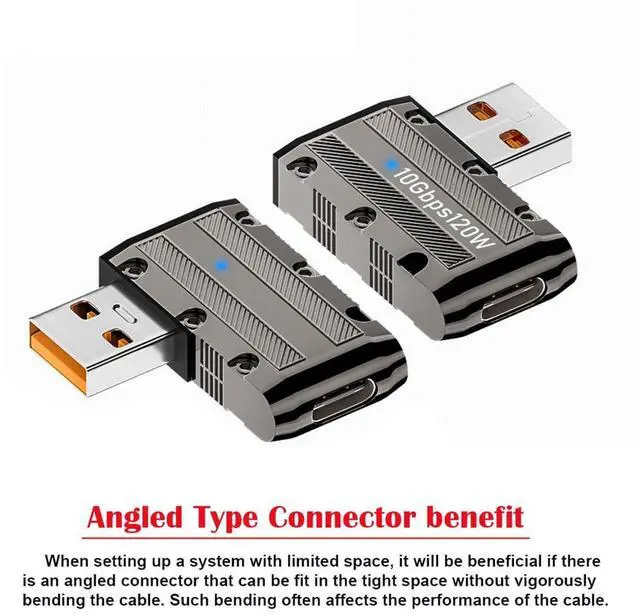 USB-C USB 3.1 Type C Female to USB 3.0 Type-A Male 90 Degree Angled Flat Type 10Gbps Data 120W Power Adapter Alloy Shell