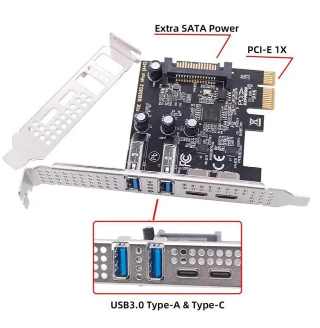 USB PCI-E Express 1x Card USB3.1 Gen1 5Gbps Dual Type-A & Type-C USB-C Female to PCI-E Adapter uPD720201 with Low Profile Bracket
