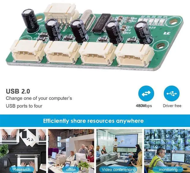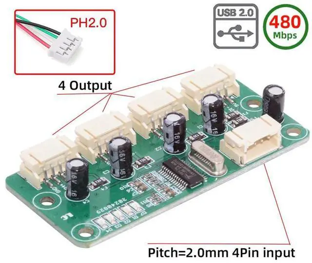 USB 4Pin Pitch=2.0mm Wafer 1-to-4 Four Ports HUB Splitter PCBA Expansion Module Board PCs Multiport 4 Devices for Keyboard Mouse Scanner Printer