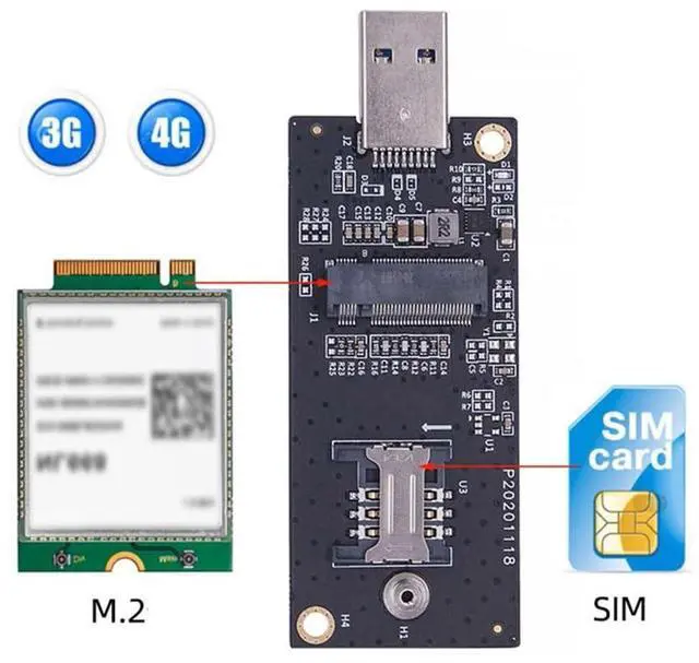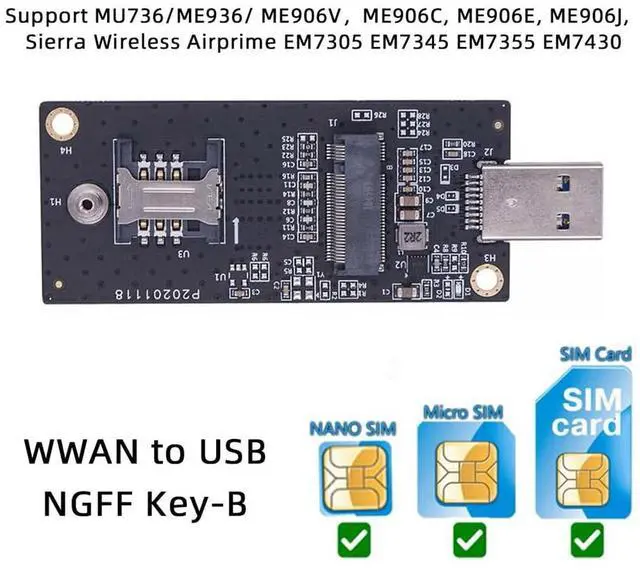 NGFF M.2 Key-B WWAN to USB 3.0 Riser Card Adapter w SIM Slot For 3G/4G/5G LTE Wireless Module Modem Card