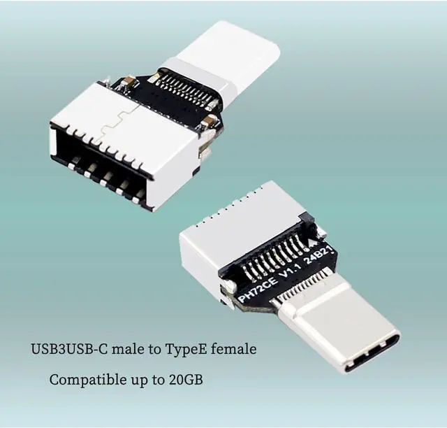 The PH721CE is a high-speed USB 3.2 adapter that converts a USB-C male connector to a Type-E female interface, supporting data transfer rates of up to 20Gbps.