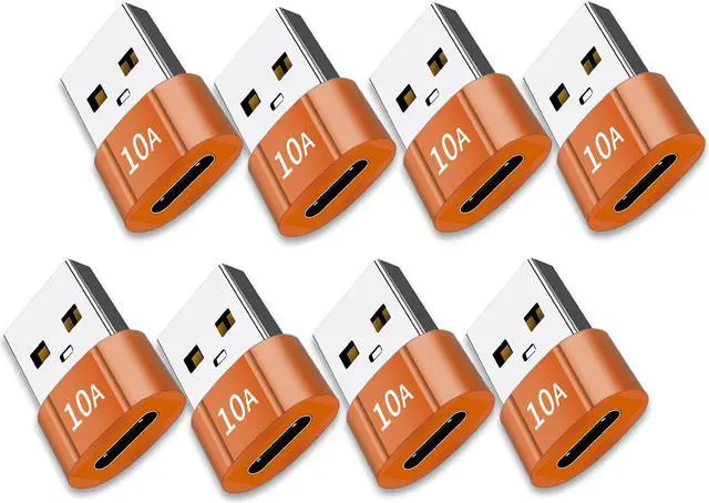 USB C Female to USB Male Adapter 8 pack 10A Type C to USB Adapter Support PD Fast Charge Data Transfer Compatible iPhone Laptop Computer Orange