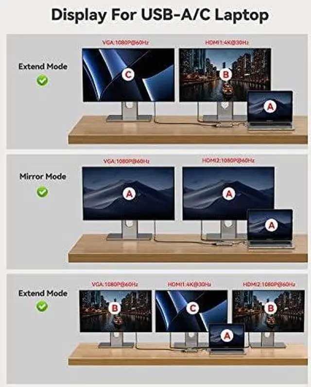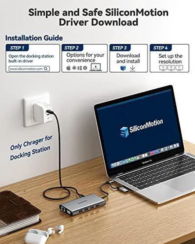 Note: Triple Display USB C Laptop Docking Station Dual Monitor required to install the "Siliconmotion" driver to use the product.