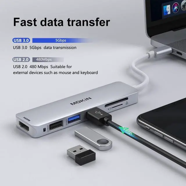 USB-C Hub (5-in-1): Extend one 4K UHD HDMI port, two supper speed USB 3. 0 ports, one SD menmory card slot and one TF momory card slot from one USB-C/thunderbolt 3/ type c port