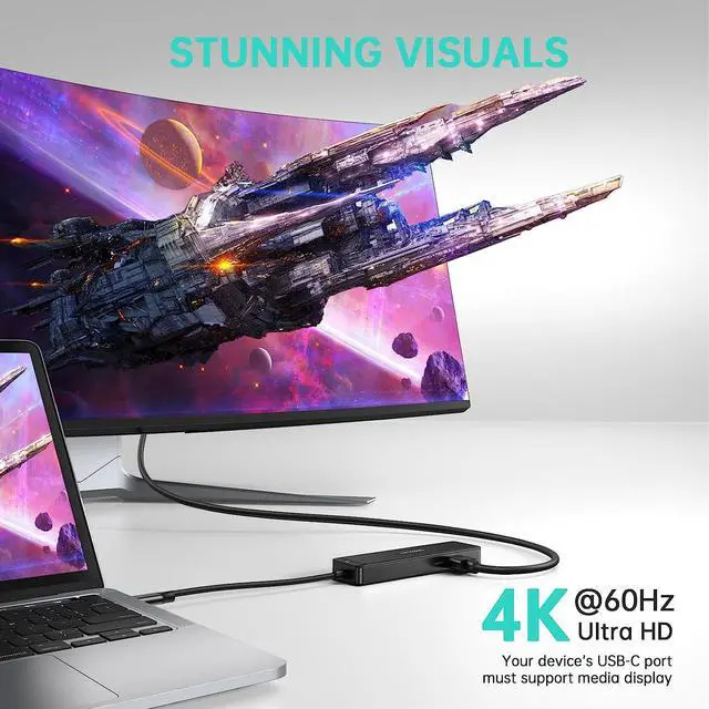 • 4K video USB-C to HDMI Adapter: USB C Docking Station with an HDMI port can mirror or extend your screen to a max resolution of 4K@60Hz. Stream movies, presentations, or video games on your monitors with one click.