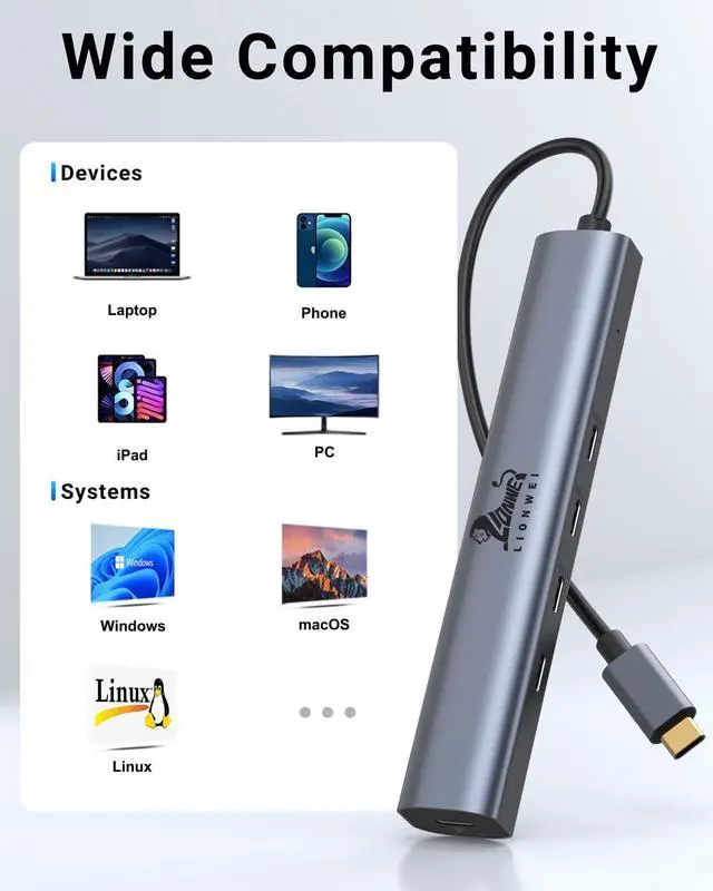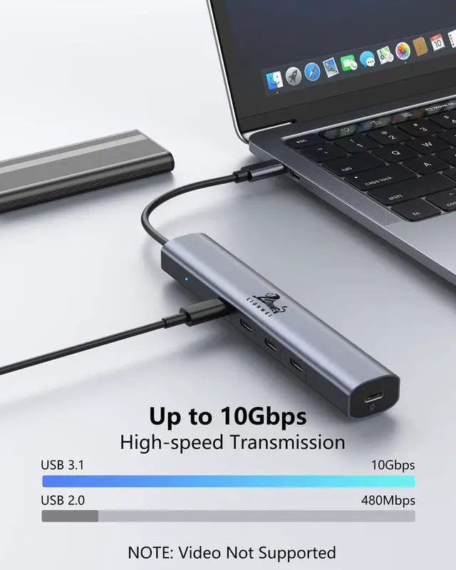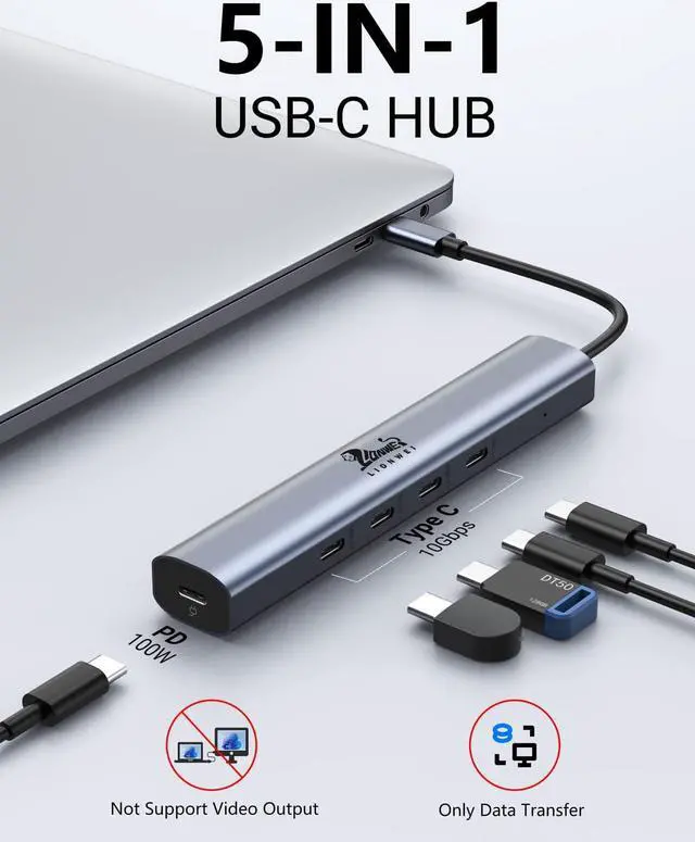 • 5 in 1 USB C Hub Multiport AdapterWith Lionwei USB C to USB C Hub ,You can easily expand your laptop's single type-C port or Thunderbolt 3/4 to 5 ports :4 X USB 3.1 (10Gbps) +100W Power Delivery. Plug and Play,no additional drivers are needed.Provides you with maximum convenience. Note:Not Support Monitor.