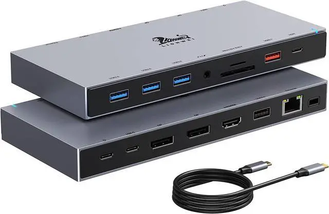 • 15 in 1 Multifunction USB C Docking StationEasily expand the type c/thunderbolt 3 port of your USB C Laptops into 15 Ports,it can support three external monitors to run, the new configuration of dual DP+HDMI maximizes the work efficiency of all visual creators. It can meet various professional needs such as video, network, power supply, and file data transmission. Plug and play, office entertainment, everything is available.