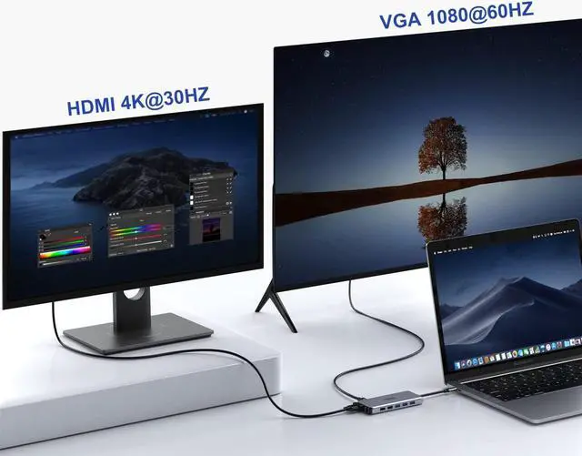 This Type-C Multiport Hub Adapter with Dual 4K HDMI, VGA, Ethernet