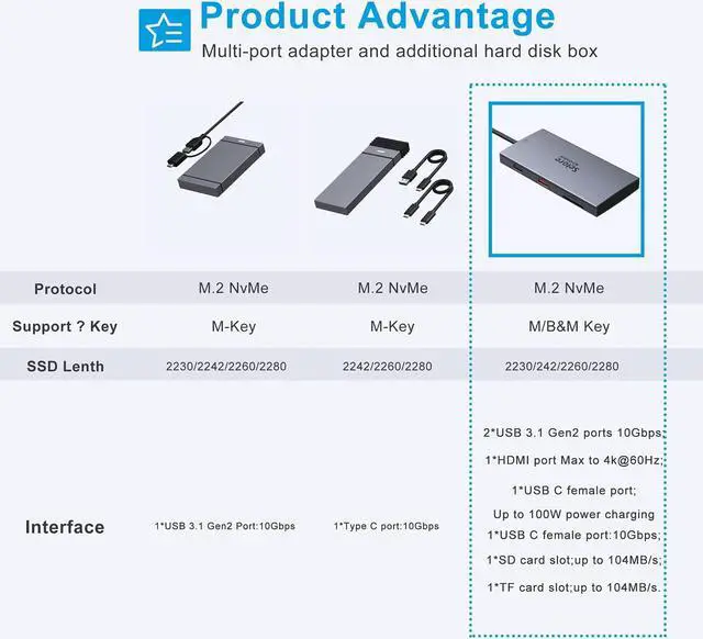 What you can get: 1x Multiport USB hub adapter(8-IN-1), 1x User manual, 18 Months of Equipment Warranty and Lifetime Technical Support