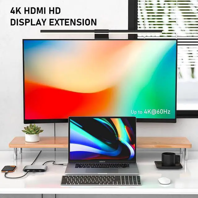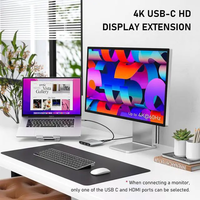Docking Station for USB-C Monitor: The USB C hub is equipped with a full-featured Type-C port, supporting data, power supply, and display output. The USB docking station supports a 4K HD USB-C monitor, which can realize mirroring or extending modes. The Type-C interface of the MacBook docking station supports up to 4K@60Hz. Note: Cannot use the Type-C port and HDMI as the display output simultaneously, output one monitor at a time.