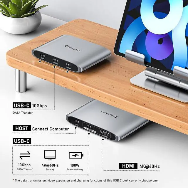 Minisopuru USB C Docking Station for USB C Monitor, 10Gbps USB C hub multiport adapter with 4K USB C Display Output, 4 Ports USB 3.2, HDMI, 100W PD, Laptop Docking station for Macbook, iMac, Windows.