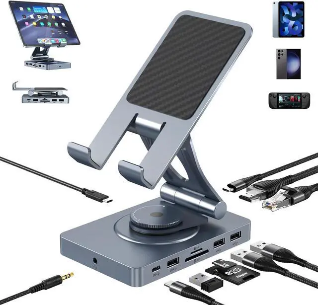 This is a powerful docking station and stand that can be folded and rotated 360 degrees.