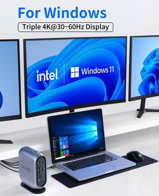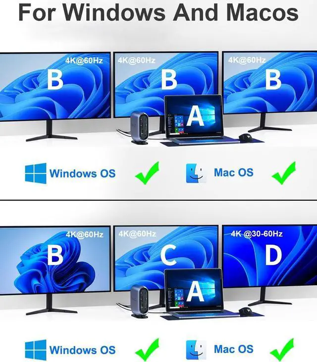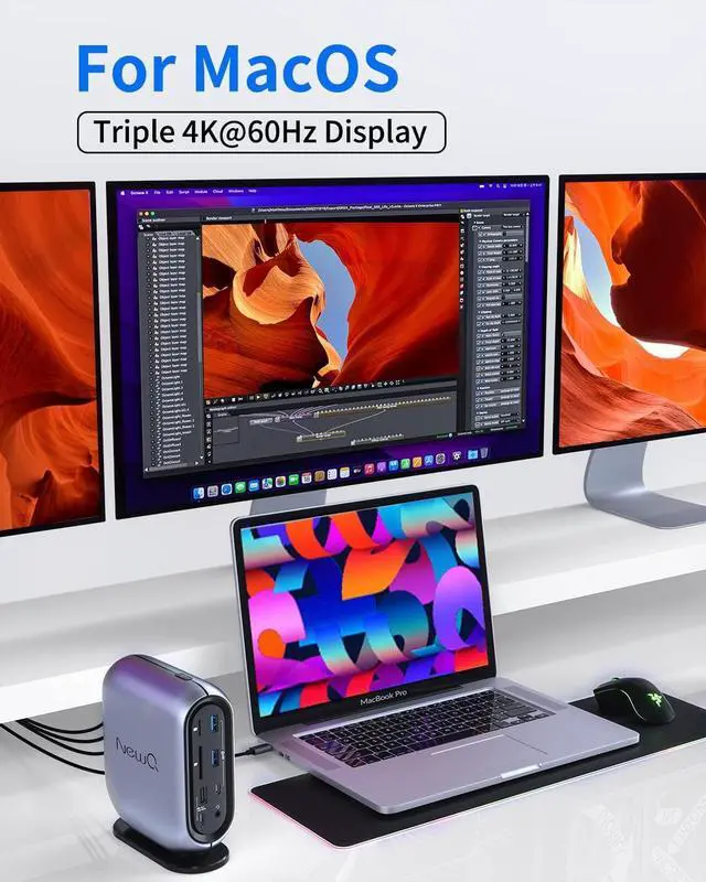 • For All UsersThis docking station can solve the limitation that Macbook's M1 M2 chip does not support triple display. That means it is compatible with almost all computer systems, such as WindowsSteamOS, etc. You can combine your external monitors to get the best experience, technology changes life.