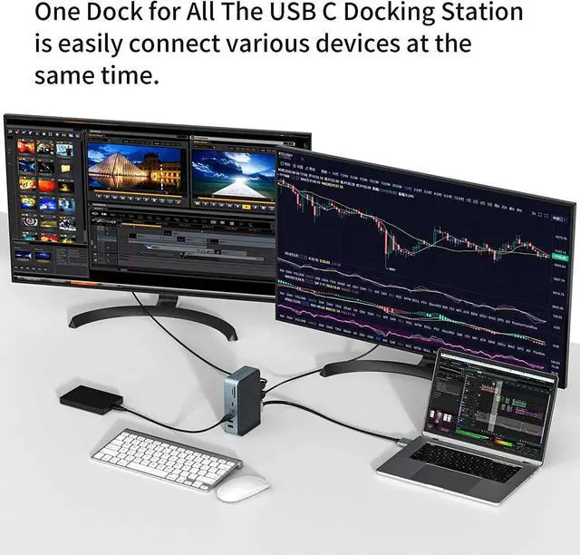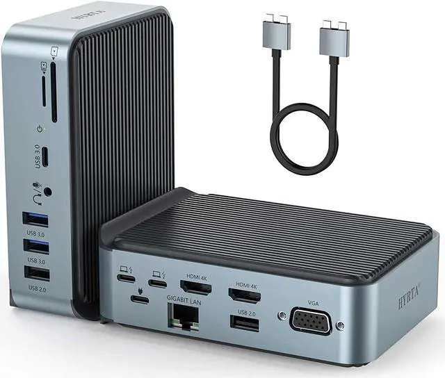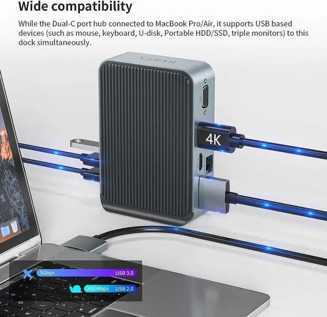 • 4K UHD Dual HDMI Adapter: HYRTA USB C Dock Station Allow you access for 3 displays via HDMI and VGA ports.Macbook Pro Air HDMI adapter enable