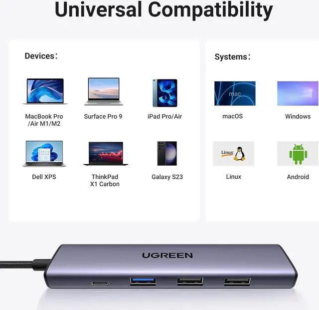 Transfer Files in Seconds: Transfer files and form your laptop at speeds up to 5 Gbps to the USB-A 3.0 port. Extra 2 USB-A 2.0 ports are perfectly connected to your keyboards and mice.