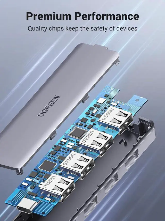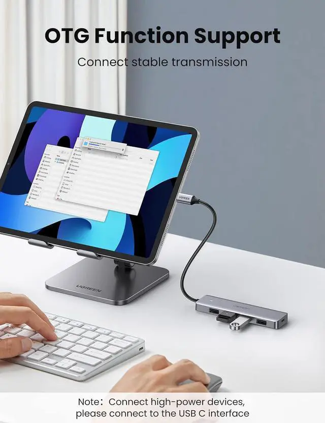5Gbps High Speed: USB C 3.1 data hub 4 Ports supports super faster data transfer up to 5Gbps, 10X faster than USB 2.0, 480 Mbps, which allows you to transfer HD movies or large files in just seconds; USB type c extension hub was built in OTG function chip, it can easily connect the mouse, keyboard, USB disk, and other USB devices to your USBC phones and tablets