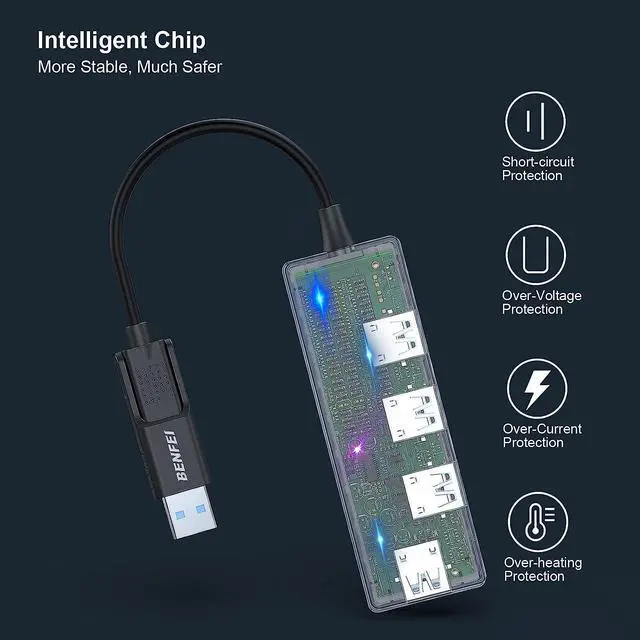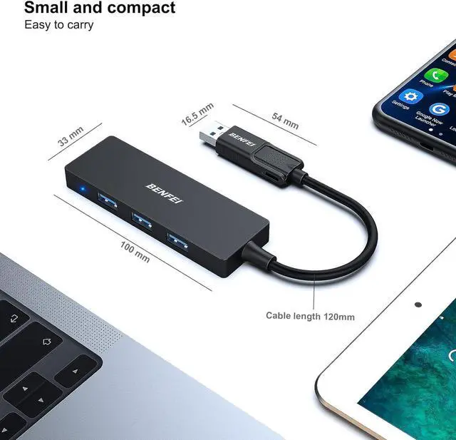 COMPACT DESIGN - The compact-designed portable adapter less than 2 ounce and 0.4 inches thin, the BENFEI Ultra Slim Hub is designed to be as portable as possible. Tuck this lightweight gadget into your bag or pocket to do a business trip with your laptop and NoteBook, or expand your desktop with more available USB peripherals.