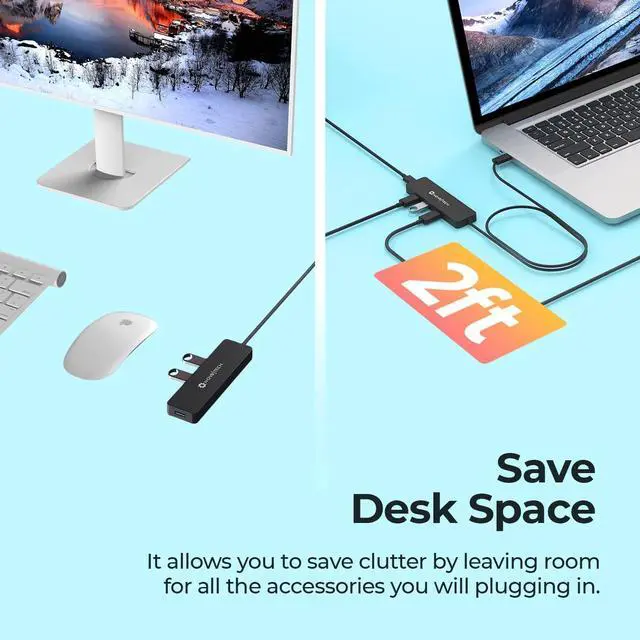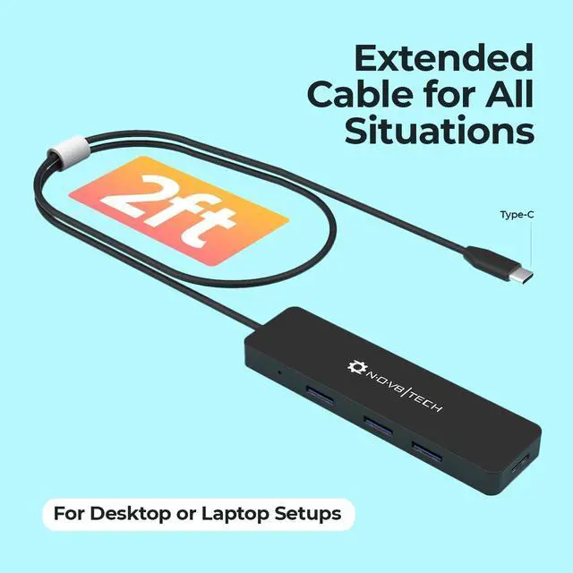 Multipurpose USB Port Hub: Upgrade your pc accessories with our usb hub 3.0. This usb adapter is a compact and convenient solution to expand your laptop with 2ft USB extension cable for easy accesss to out of the way ports.