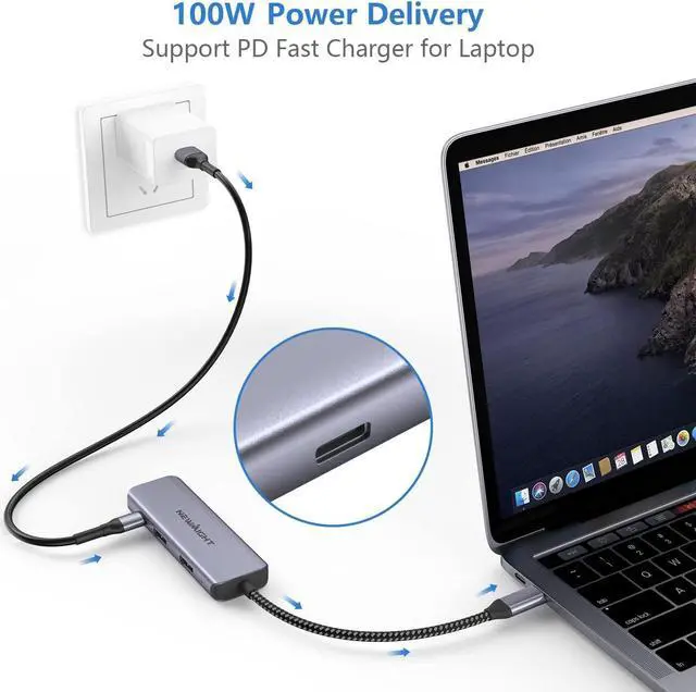 Charge Your phone While Displaying Phone Screen via HDMIThe USB TYPE C to HDMI adapter built with 100W Charging type-c port, it passes through fast charging, you can charge your usb c laptops/tablets/phones quickly when you using other ports. No worry about power shortage.