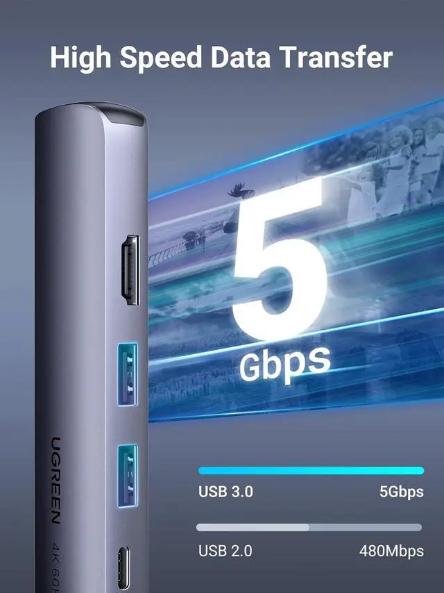 USB 3.0 Fast Data Transfer: Connect various peripheral devices like (wireless or wired) mouse, keyboard, hard drive, USB flash disk and more simultaneously. Two USB 3.0 ports transfer movies, music and files at speeds up to 5Gbps, 10 times faster than USB 2.0.