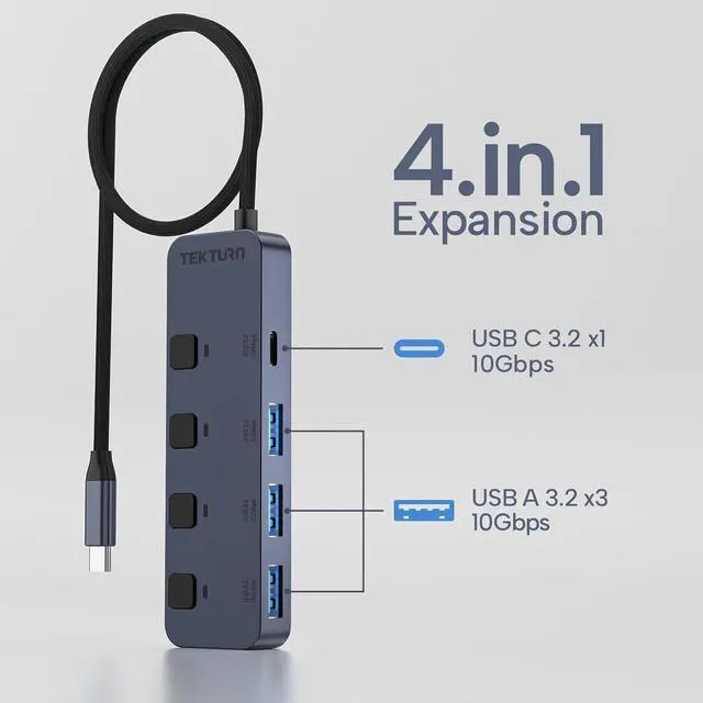 Comprehensive Port Selection: Equipped with 1 USB-C 3.2 and 3 USB-A 3.2 ports, catering to all your device connectivity needs. No PD Charging.