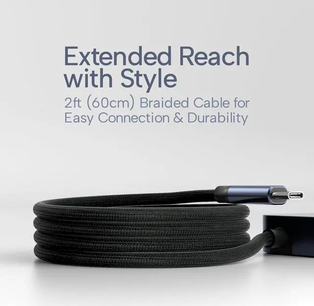 60cm/2ft long braided cable ensures durability, provides an extended reach for added convenience, and enhances user comfort.