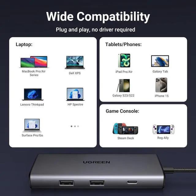 Broad Compatibility: The USB C dongle is compatible with almost USB-C devices such as MacBook Pro, MacBook Air, MacBook M1, M2, iMac, iPad Pro, Chromebook, Surface, Steam deck, Switch, etc.
