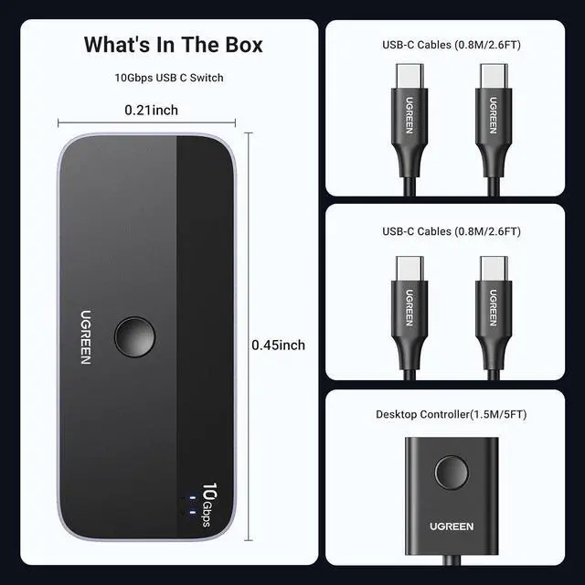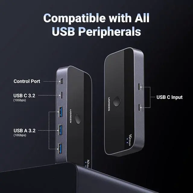 Connect USB C & USB A Devices: The USB 3.2 switch provides 1 USB C port and 3 USB A ports to support connecting various USB devices. USB C ports can be connected to a USB C hub or other USB C devices, extending more ports for two computers.