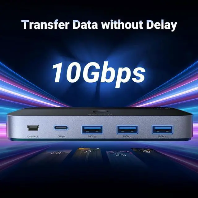 10Gbps Fast Transfer Speed: The USB 3.2 switcher supports data transfer up to10Gbps, transfer 1 GB files in 1.5 second in seconds, improving your work efficiency without waiting.