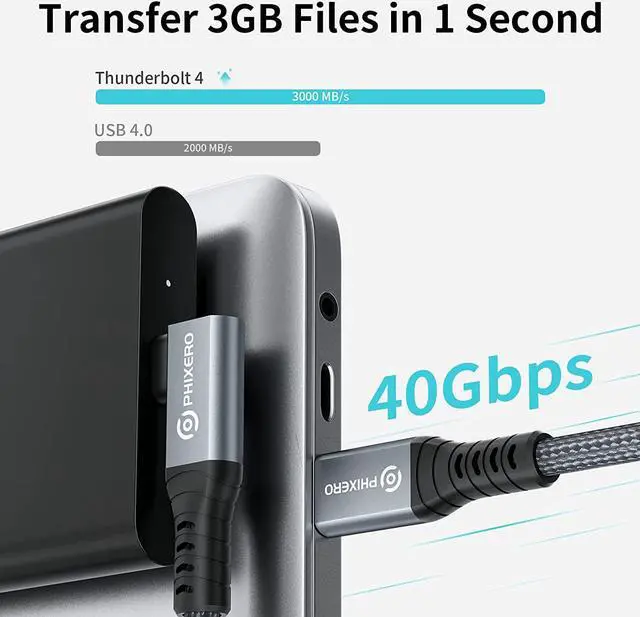 Next page 40Gbps transmission speed: Theoretically supports 40Gbps data transmission, the maximum transmission rate is up to 3000Mbps/s, please ensure that your devices support Thunderbolt 4 and Thunderbolt 3 interfaces, and the transmission rate depends on your host and device upper limit