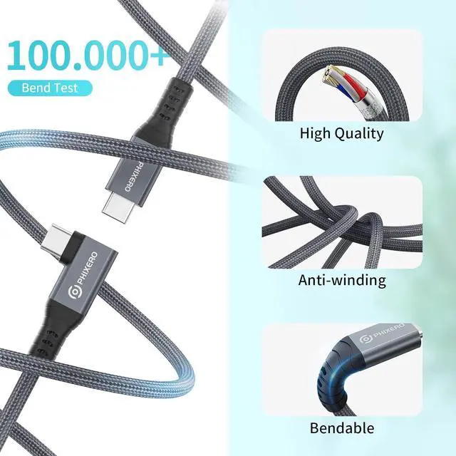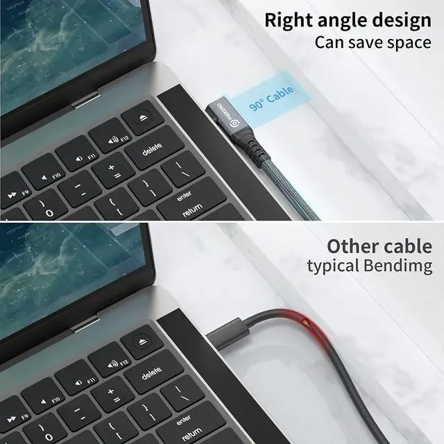 90 Degree USB C cable: 90-degree right-angle design makes your desk more concise and will not affect the feel when using mobile phones and tablets