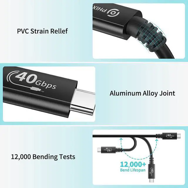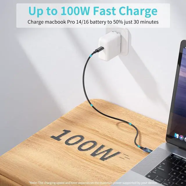 PHIXERO USB 4.0 Cable supports 40Gbps data transfer and 100W fast charging, it only takes 1 second to transfer 2.7GB files to your laptop, and charge Macbook Pro 16 for 30 minutes to get 50% power, saving you a lot of time ( *Note: The maximum transfer speed and charging power depend on the upper limit of your device, please make sure your device interface supports it)
