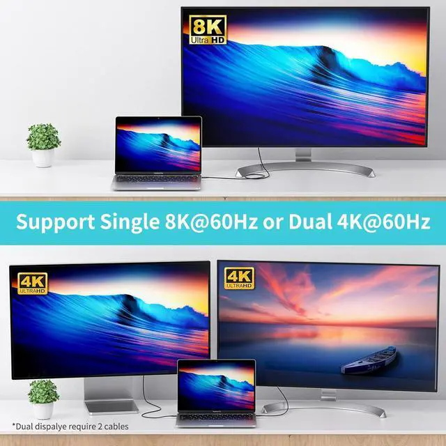 If you need to connect a monitor to cast a screen, this cable can also be satisfied. Connecting a single device can output 8K@60HZ video, and can connect 2 devices at the same time to output 4K@60HZ video, watching football games, watching live broadcasts, combined with 40Gbps transmission rate, Allows you to enjoy high-definition picture quality at all times, and also can cast the game to the monitor, so that you can play more fun.