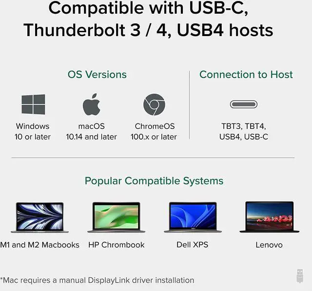 Compatibility isnt an issue with this docking station for laptop, as it works seamlessly with Windows 10 and newer, macOS 10.14+, and ChromeOS.