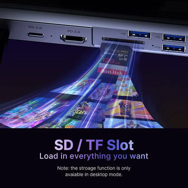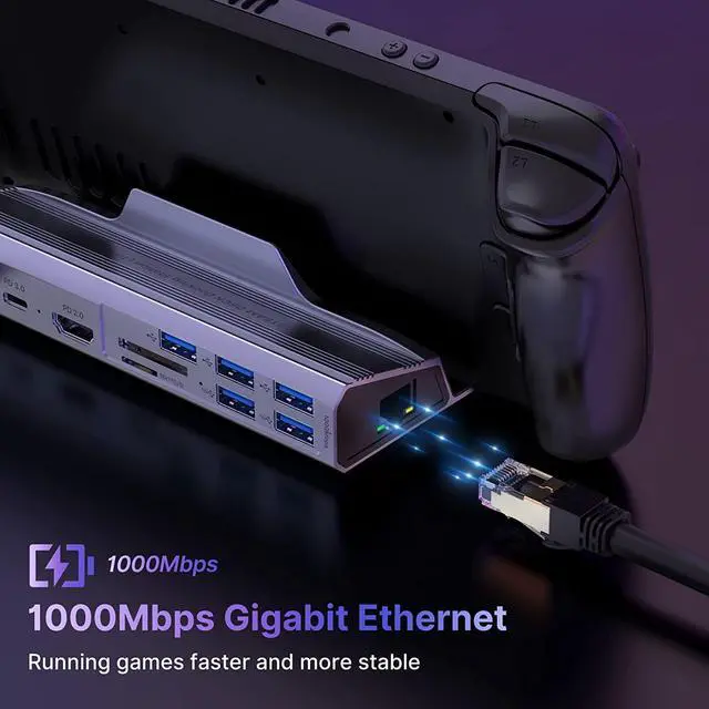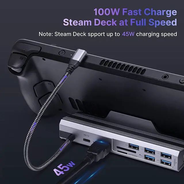 10-IN-1 Steam Deck Docking Station: Ulanzi Docking Station for Steam Deck convert your steam deck usb type c port into 10 ports: HDMI 2.0(4K@60Hz), Gigabit Ethernet(1000Mbps),SD&TF Slot, 2*USB3.1 Gen1 ports(5Gbps), 3*USB2.0 ports, USB C PD charging(100W), letting you explore a new way to play with Steam Deck.Note:SD/TF storage function can only be used normally in desktop mode