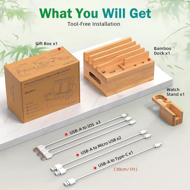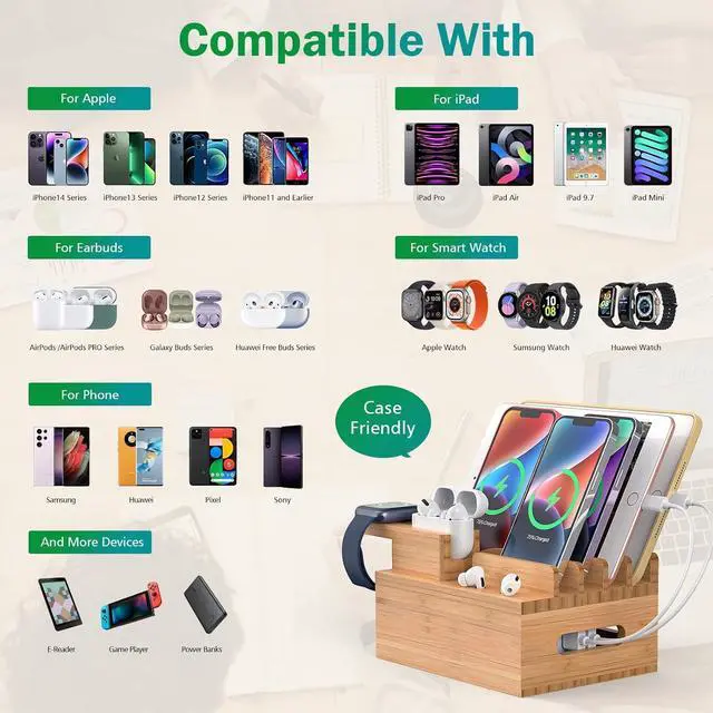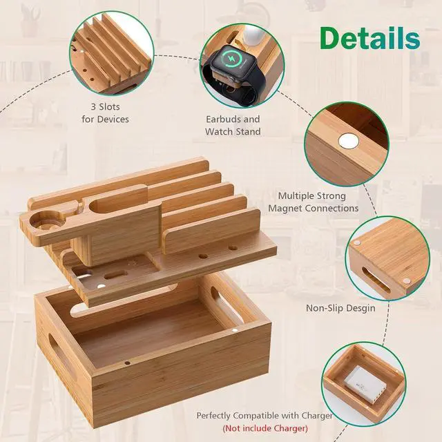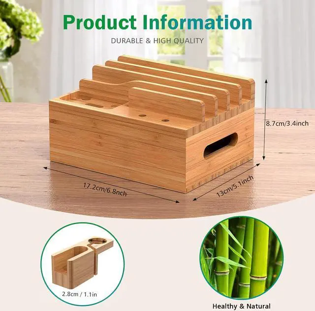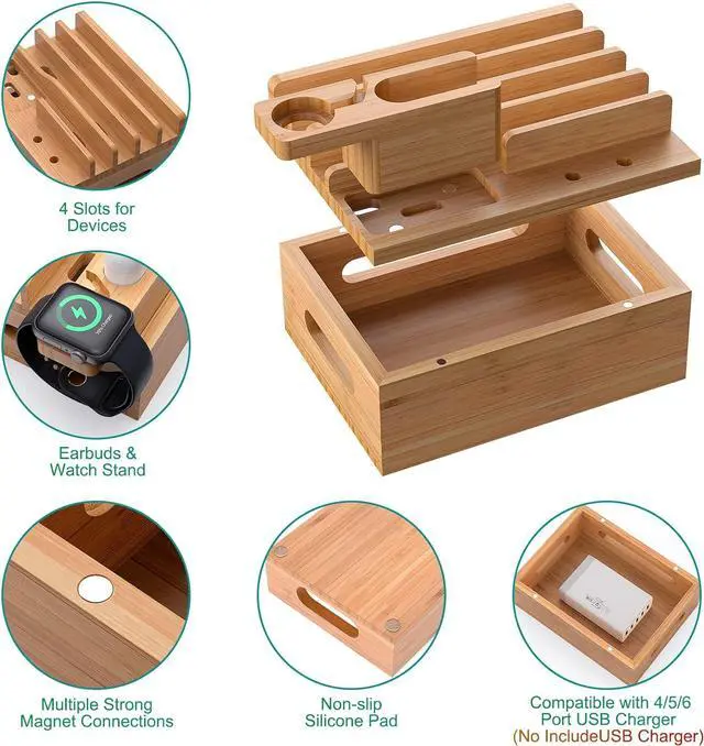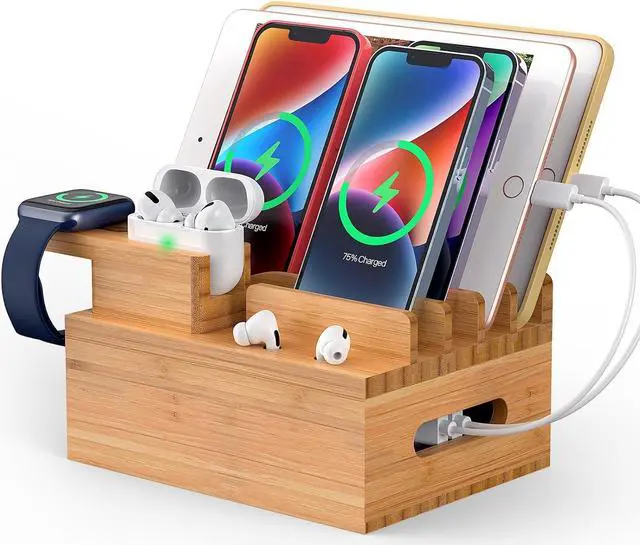 Next page3.5 out of 5 starsPhone Docking Station for Multiple Devices, Electronic Organizer Stand Box- for Cell Phones, Tablets, Watches, with 6 Cables, Bamboo (No Power Charger)