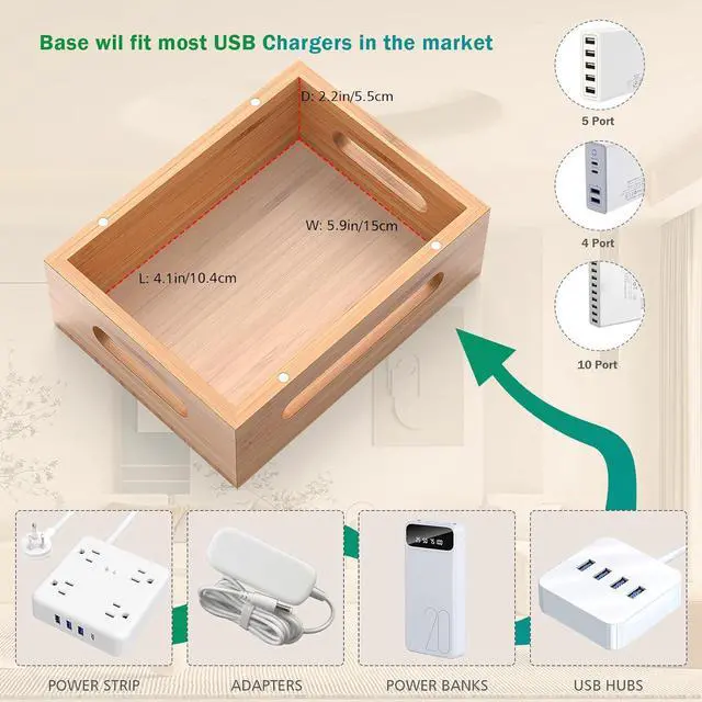 With spacious compartment (6.7*5*2.2inch), you can place USB charger HUB 4/5/6 ports inside while hiding all the cables.